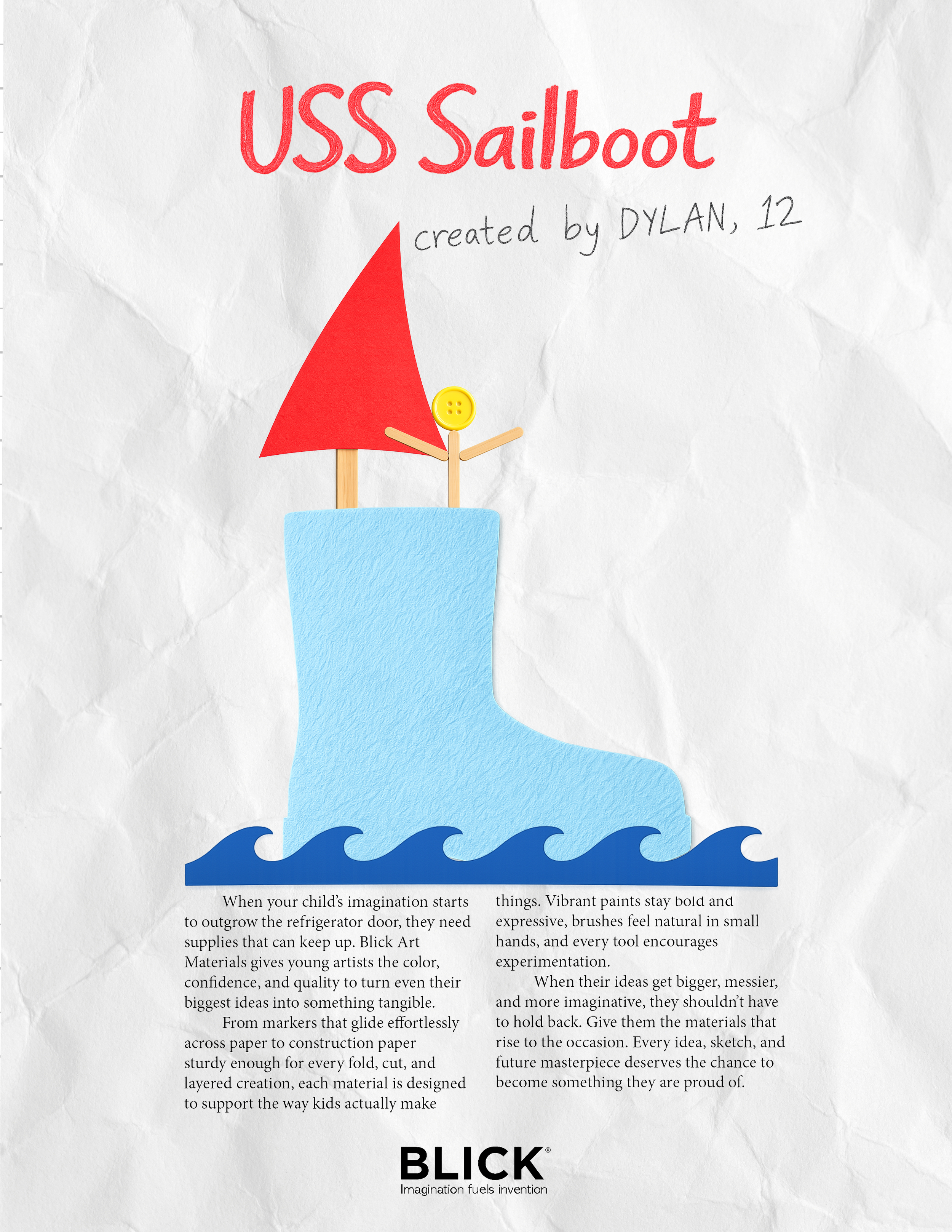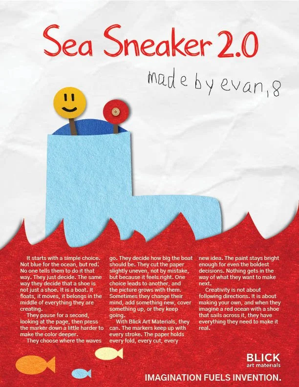 This Blick Art Materials campaign targets parents of children ages 5–12 who value creativity as an essential part of their child’s growth, positioning Blick as the trusted partner in turning imaginative ideas into real creations. Centered on the insight that every invention starts as a child’s once “wild” idea, the concept celebrates playful, kid-like creativity while reinforcing Blick’s credibility and quality.